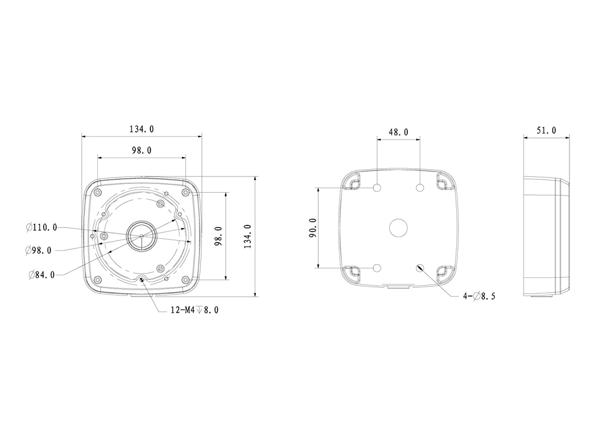 Abmessungen134 mm x 134 mm x 52 mm (L x H x T)