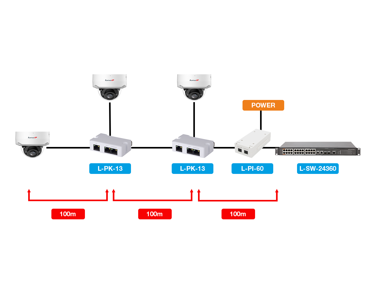 Der L-PK-13 PoE-Extender ermöglicht eine einfache und zuverlässige Erweiterung von PoE-Strecken – ganz ohne zusätzliche Stromversorgung. Mit einem Eingang und zwei Ausgängen lassen sich mehrere Kameras oder weitere Extender flexibel verbinden. So können auch größere Distanzen mühelos überbrückt werden. Durch seine kompakte Bauform und die einfache Montage ist der L-PK13 ideal für den professionellen Einsatz in modernen Videoüberwachungssystemen und überzeugt mit stabiler Leistung und hoher Zuverlässigkeit.